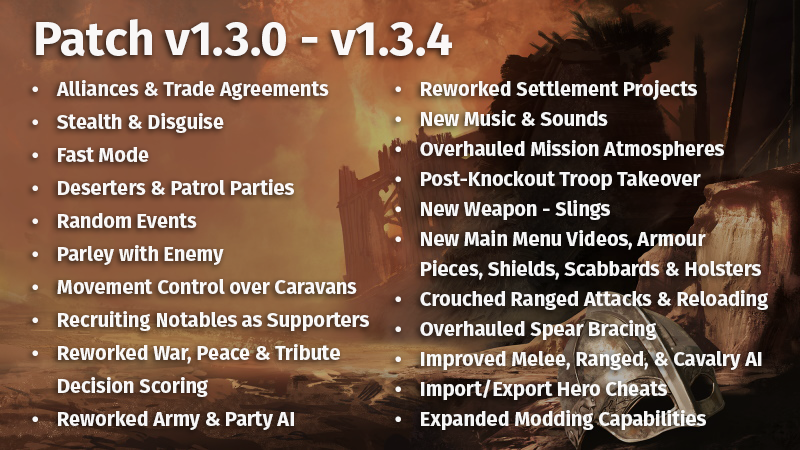 Vous pouvez lire les notes de patch complètes ici : https://www.taleworlds.com/en/News/587