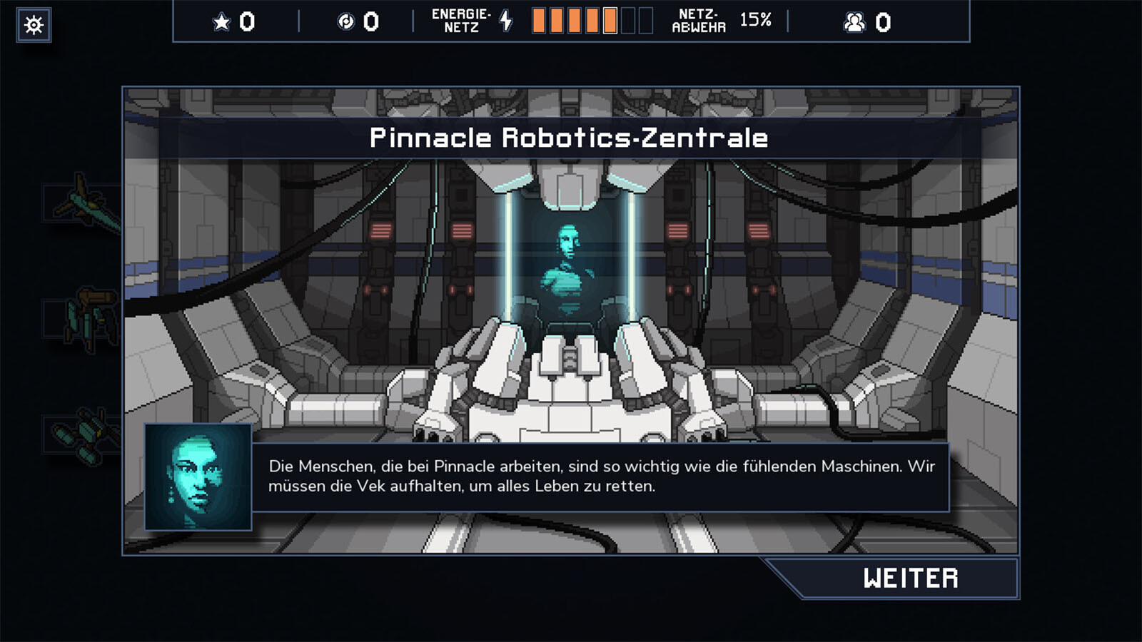 • Défendez les villes : les bâtiments civils alimentent vos Mechas en énergie. Protégez-les contre les Veks, et attention à ne pas leur tirer dessus !