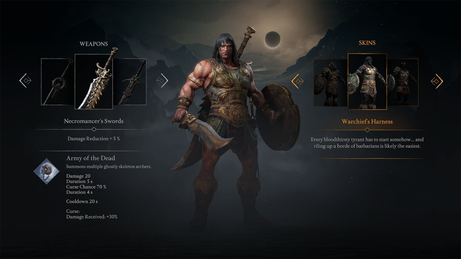 Jouez en tant que Conan, l'invincible barbare, et anéantissez vos ennemis avec son arsenal d'armes iconiques. Bloquez les attaques avec ses caractéristiques uniques, infligez de lourds dégâts critiques et utilisez votre compétence Bélier pour charger et repousser les ennemis sur votre passage. Maîtrisez trois styles de combats différents : écrasez vos adversaires avec une grande épée, foncez dans la mêlée avec un bouclier ou misez sur la vitesse avec les lames doubles.