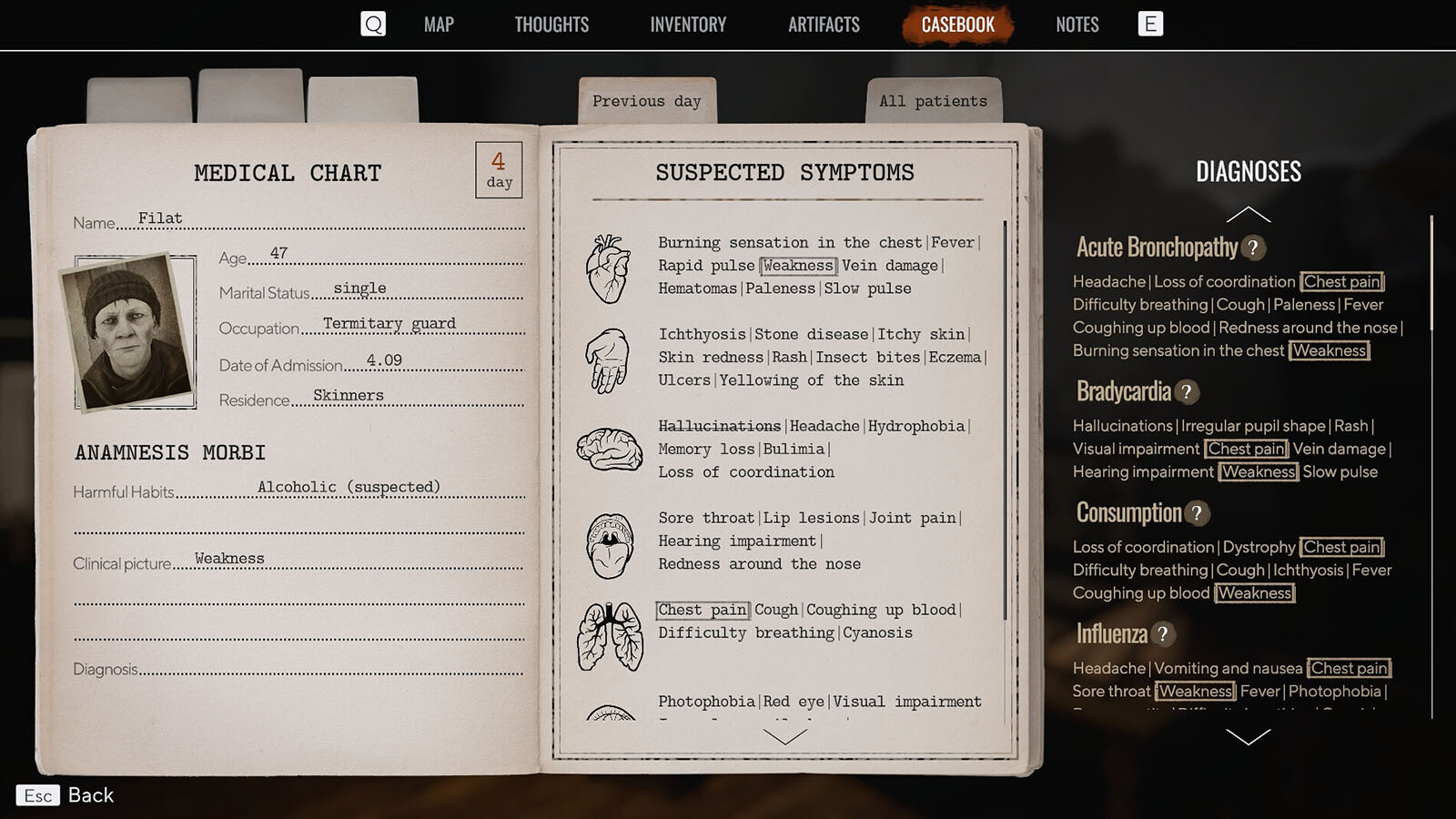 Examinez les malades et établissez des diagnostics. Chaque patient a une histoire unique et représente un mystère médical. Ils peuvent mentir, omettre la vérité ou cacher leurs motivations. Vous devez séparer la réalité de la fiction et identifier les symptômes réels. Pas à pas, vous vous rapprocherez de la mise au point d'un vaccin qui pourrait tout changer.