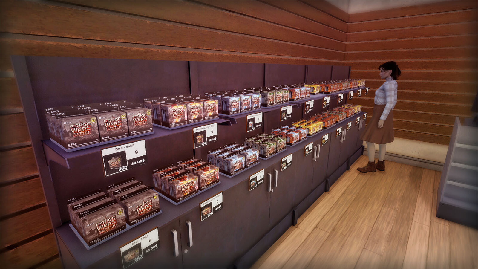 Remplissez vos étagères avec tout ce qu'un joueur peut désirer ! Commandez des figurines, des livres de règles, des peintures, des pièces de terrain et des accessoires de jeu pour que vos clients en redemandent. Choisissez de vendre des figurines pré-assemblées ou de laisser les clients partir à la recherche de pièces rares dans des packs mystères à collectionner. Adaptez votre stock aux demandes des clients et aux tendances du marché.