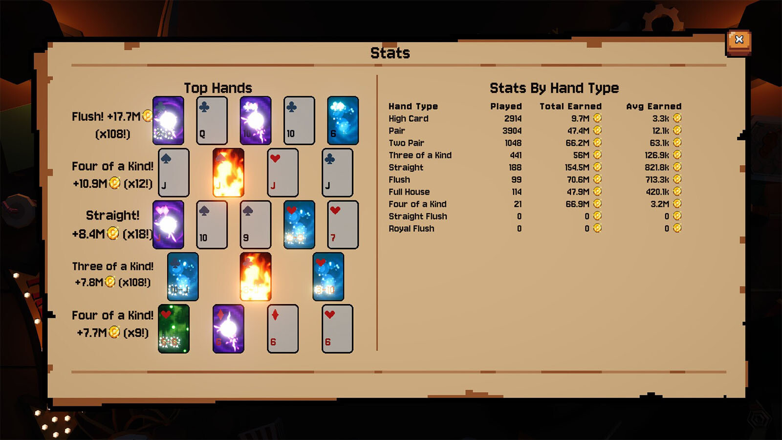 Même si le Bouffon n'aime pas ça, vous pouvez acheter de nouveaux decks de cartes de manière à pouvoir jouer plusieurs mains à la fois. Utilisez cela à votre avantage pour faire augmenter ces chiffres encore plus rapidement !